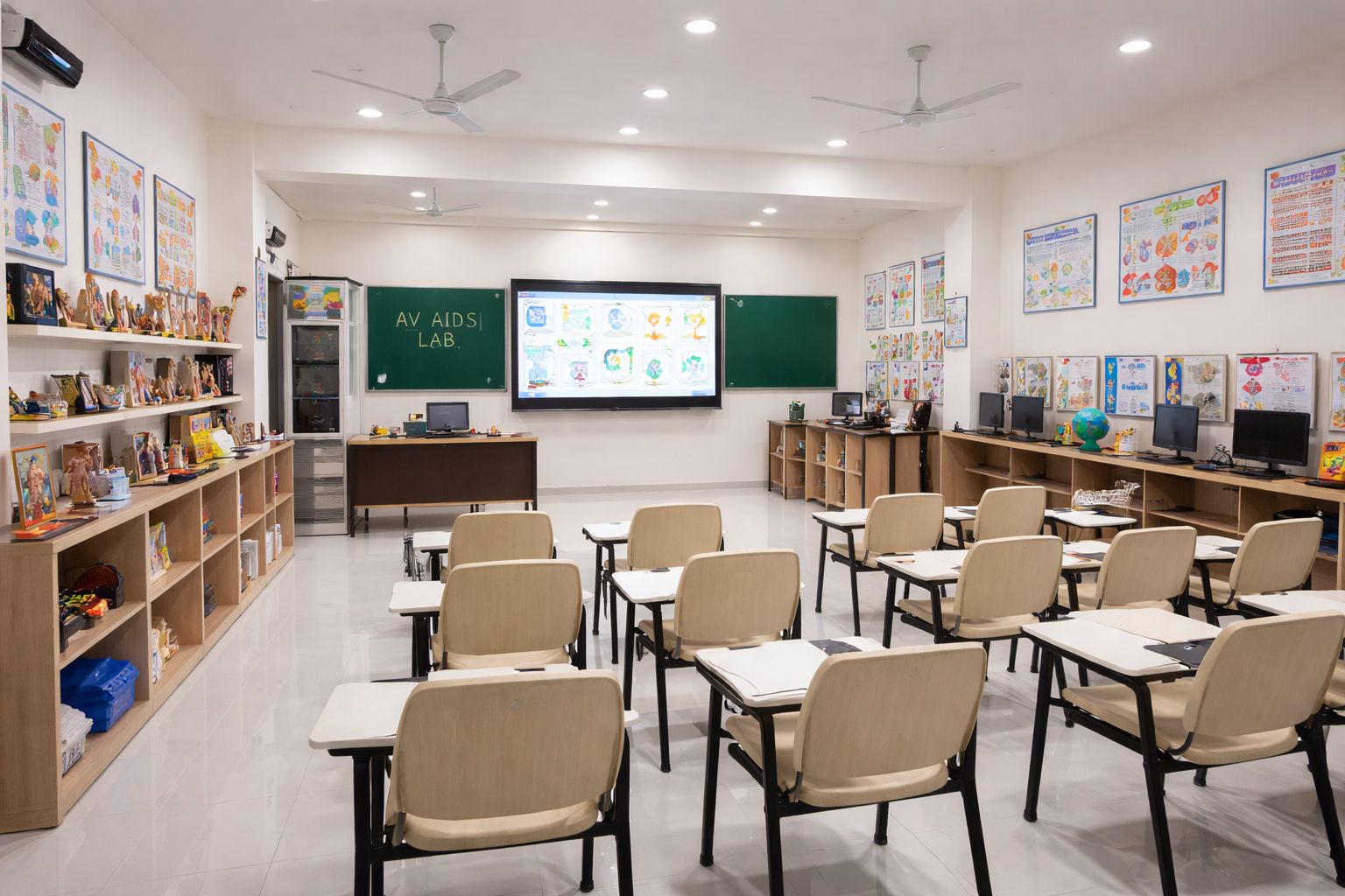 The Audio-Visual (AV) Aids Laboratory is a well-equipped and spacious facility designed to enhance teaching and learning through modern educational technologies. The lab provides students with hands-on experience in using various audio-visual teaching aids, helping them develop effective communication and presentation skills.
